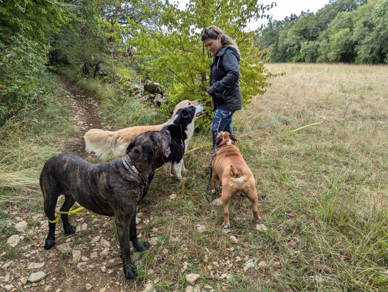 L’âge, la race n’est JAMAIS un frein pour travailler en méthodes respectueuses ; comprendre et accompagner un chien en douceur, dans le respect de son intégrité et de ses limites lui permettront d’être plus serein, plus apaisé.